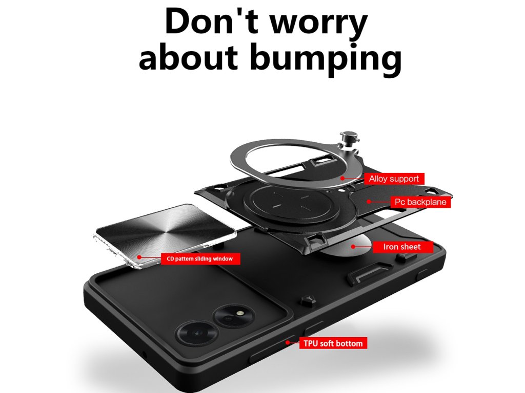 Toto pouzdro je speciálně navrženo pro váš telefon a dokonale obepíná váš telefon. Je vybaveno otočným kroužkem z nerezové oceli, který slouží jako stojánek telefonu. Díky tomu můžete telefon nastavit do ideálního pozorovacího úhlu, abyste si mohli pohodlně vychutnat své oblíbené filmy, videa nebo videochaty.